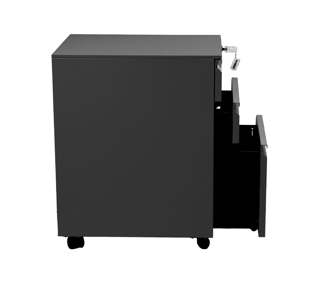 • Seguridad Incorporada: Uno de los cajones incluye un sistema de cerradura con llave, asegurando la protección de documentos confidenciales o pertenencias de valor.