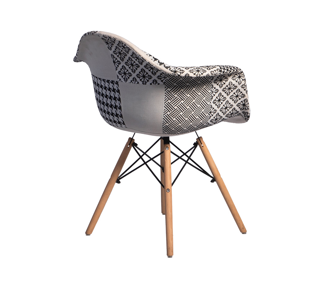 La Silla Eames tapizada con posabrazos es una fusión de confort y diseño contemporáneo, ideal para integrarse en cualquier espacio de trabajo con elegancia. Su tapizado en patrones geométricos en blanco y negro no solo añade un toque artístico, sino que también ofrece una experiencia de asiento excepcionalmente cómoda. Los posabrazos contorneados proporcionan un soporte adicional, perfecto para esos momentos de descanso entre tareas.