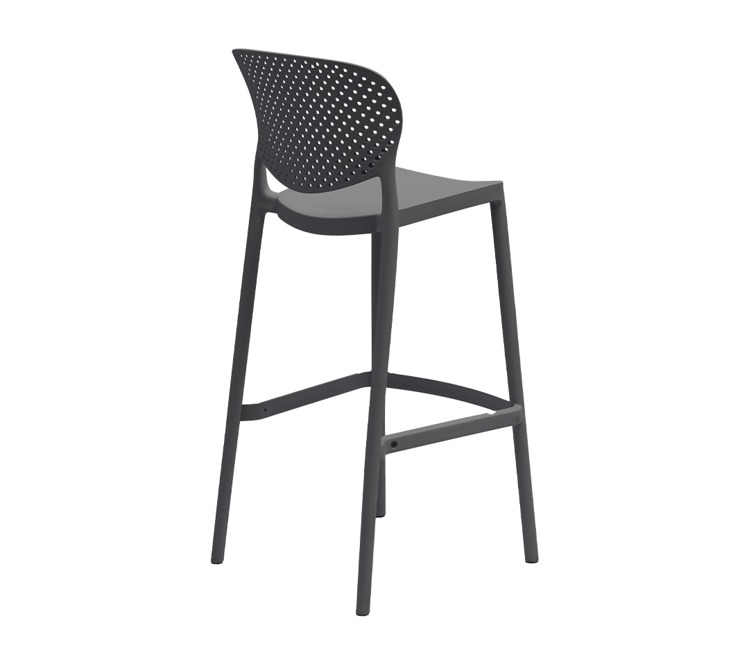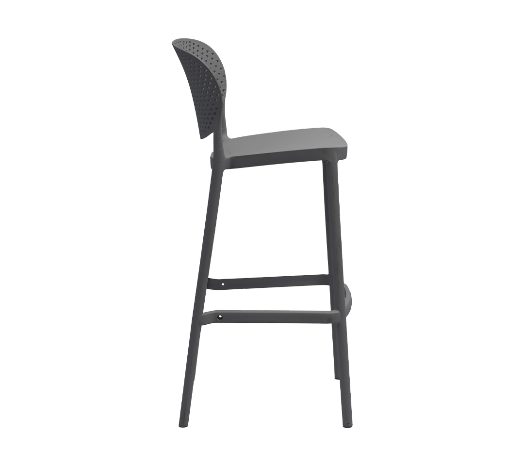 El TABURETE FRANCO es la síntesis de funcionalidad y estética contemporánea, diseñado para integrarse armoniosamente en cualquier área de trabajo. Este asiento se caracteriza por su respaldo perforado en patrón uniforme que no solo aporta un toque distintivo, sino que también ofrece una ventilación adecuada. Su estructura monolítica en color negro mate proporciona una presencia elegante y sobria, ideal para espacios profesionales o personales con un toque minimalista. El asiento sin revestimiento enfatiza la simplicidad del diseño, mientras que la ausencia de posabrazos y cabecera maximiza el espacio y facilita la libertad de movimiento.